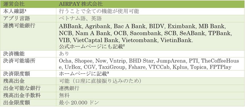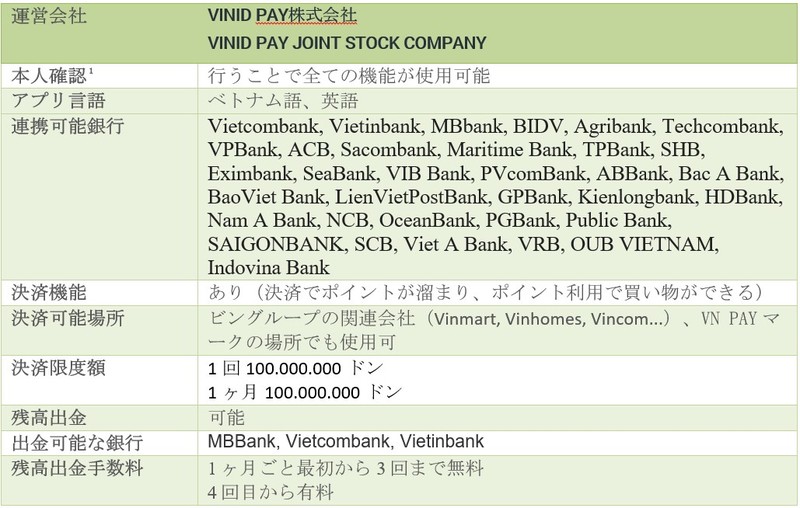 MOMO、AIR PAY、ZALOPay、Smart PAY、Vin IDの5つです。