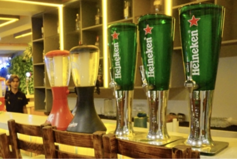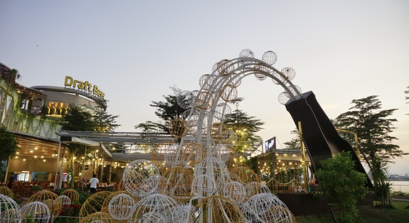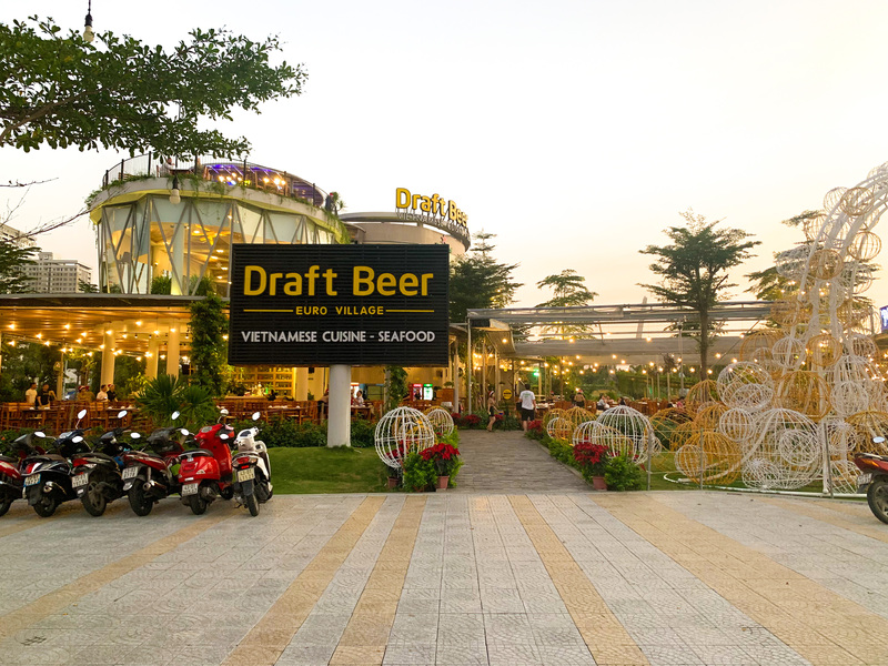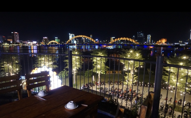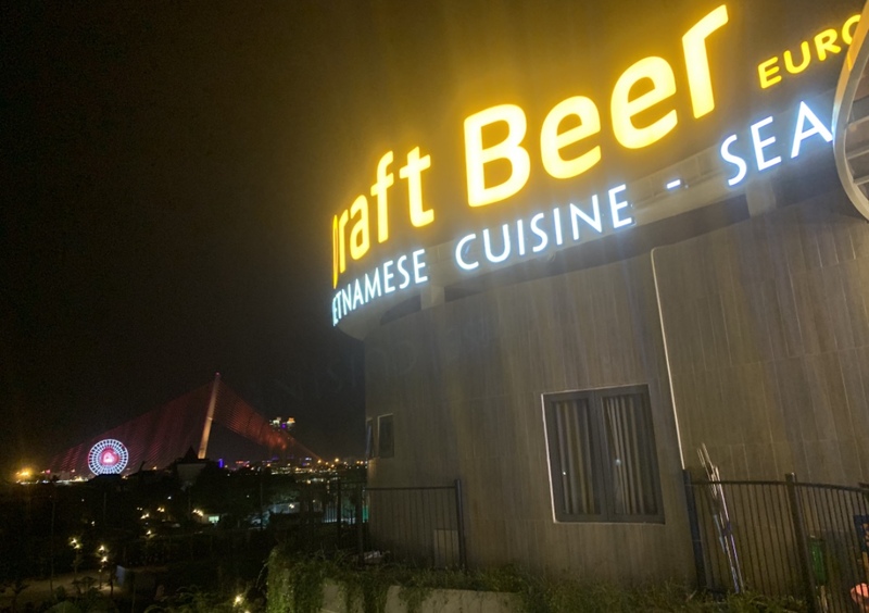 ダナン空港から、海沿いへ真っすぐ、ドラゴン橋を渡っていると、川沿いにイルミネーションが目を引く建物が「Draft Beer」
