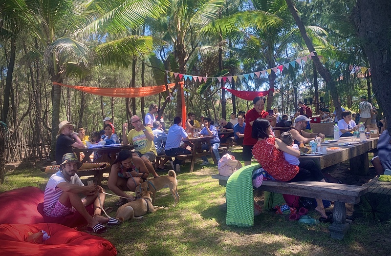 子どもから大人まで参加し、ワイン片手に会話を楽しむ人、犬連れで海辺で遊ぶ人、プールや海で泳ぐ人、等で賑わいを見せていました。
