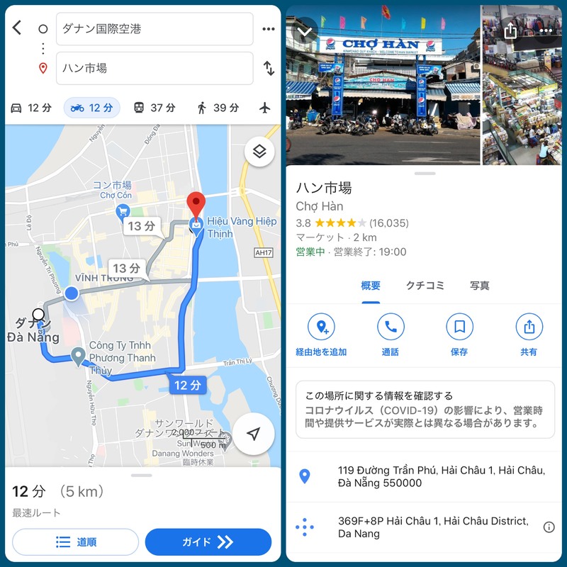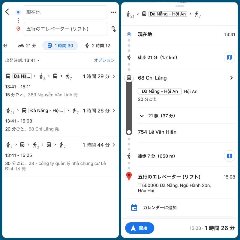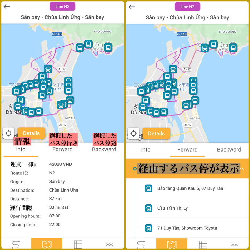 - ダナンのバス停が表示される