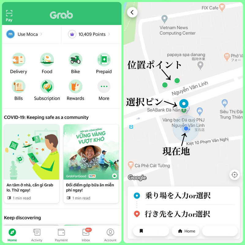 Grabの人気の理由の一因として、事前に乗車地、行き先を入力し、料金が出ることにあると思います。