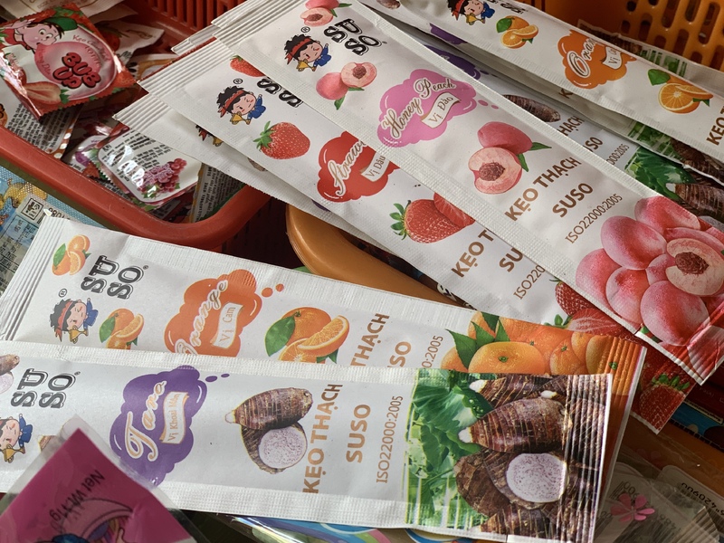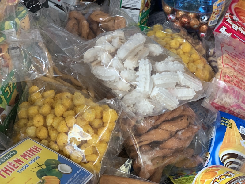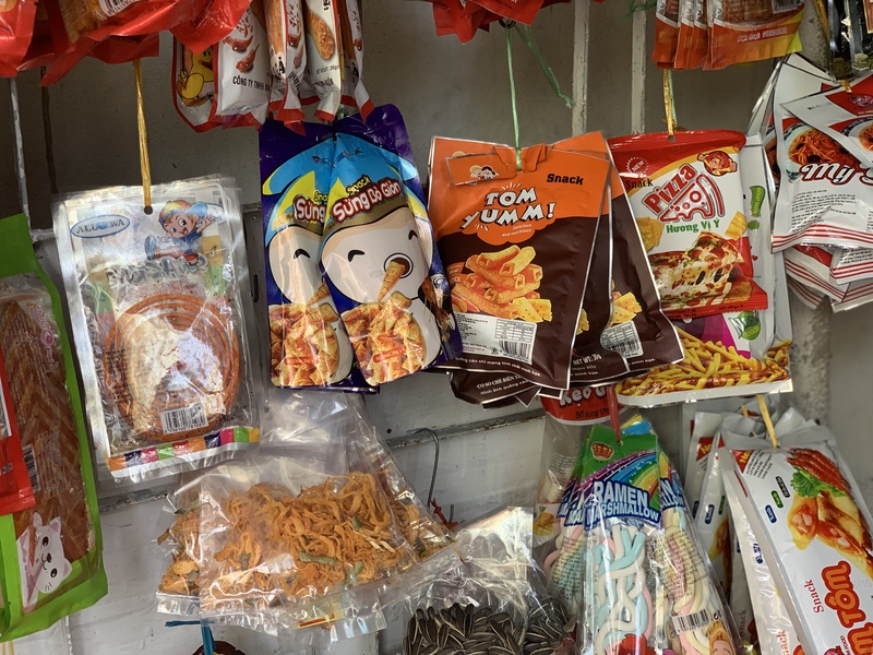 今回伺った駄菓子屋さんでの最低金額は1000vnd(約5円)、高くても20.000vnd(100円)程度。