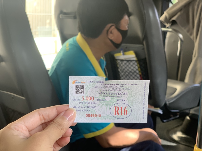「R16 」のバスに乗り、「151Trần Phú:(ピンクの大聖堂前)」から終点の「Cao đẳng Việt Hàn:越韓大学」までは約30分の道のりです。