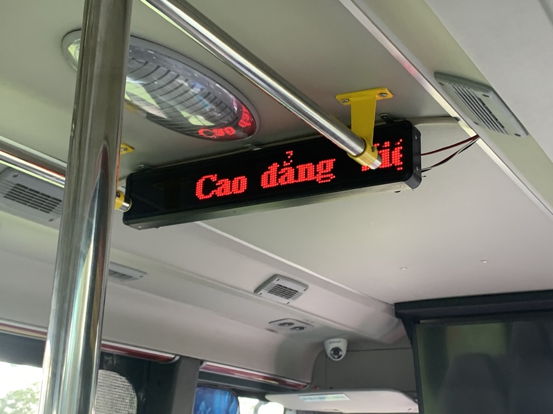 今回のように終点まで行く際は焦らないで大丈夫ですが、途中下車する場合は下車するバス停の名前をベトナム語で控えておき、電光掲示板に表示される次のバス停名を確認しておく必要があります。