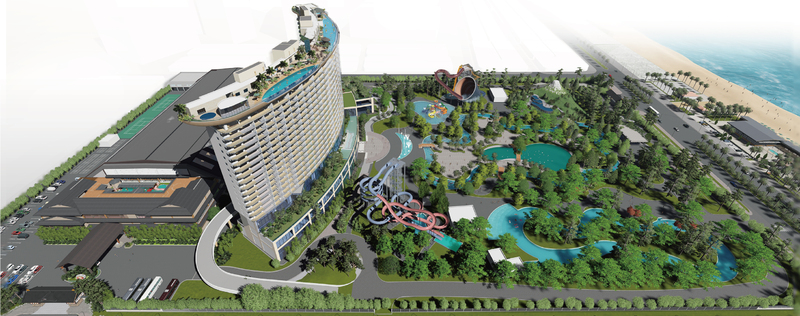 最終的には、ダナン空港から約15分程度のダナン湾エリアに2つの宿泊施設、大型温水テーマパーク施設、2つの野外プール、食事処、が出来上がります。