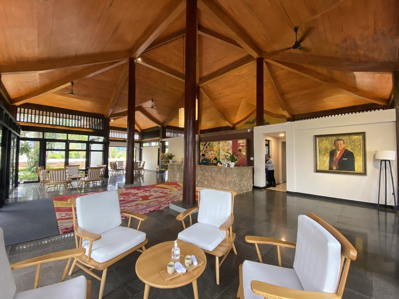 深緑色のアオザイを着たスタッフと、温かい色味の和柄の絨毯が出迎えてくれます。