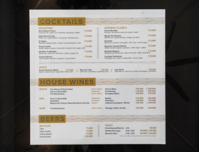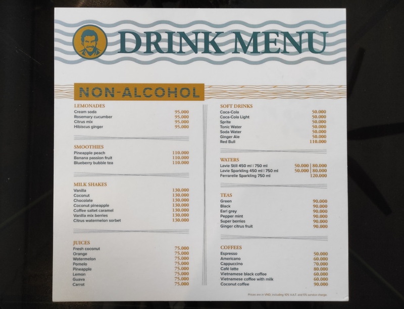 コーラやジンジャーエールなどのソフトドリンクは50.000VND(約250円)。