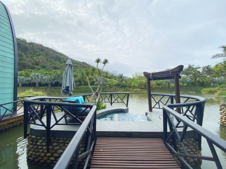 宿泊棟から離れた場所にあるトリートメントルームは、池のほとりに一列に並ぶ8つの青い屋根のヴィラタイプのお部屋です。