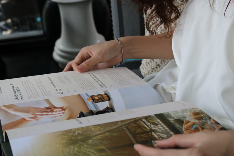 スパのレセプションでは、メニューを選び、カウンセリングシートを記載します。