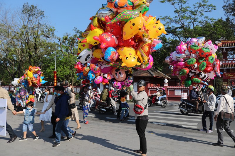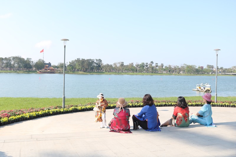 ダナンもフエも同様に訪れる人は、新年にふさわしいようなお揃いの新しい服や華やかな色のアオザイを着て友人や家族、恋人と訪れ写真を撮り楽しんでいました。
