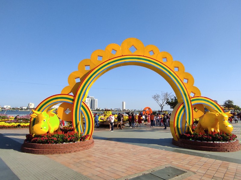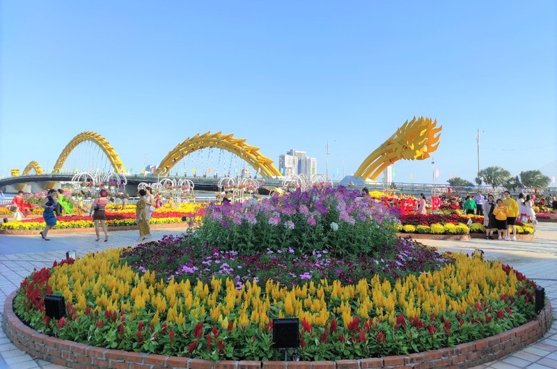 ダナンは市内中心地にあるHàn川沿いのBạch Đằng通りに例年飾り付けられました。