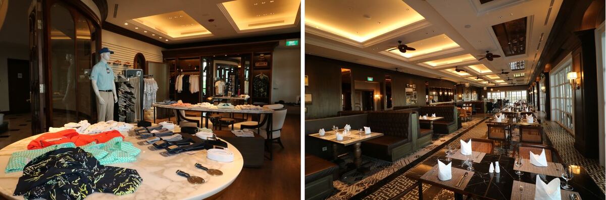 中にはレストラン、カフェ、会議室、プロショップ、ロッカールームが完備されています。