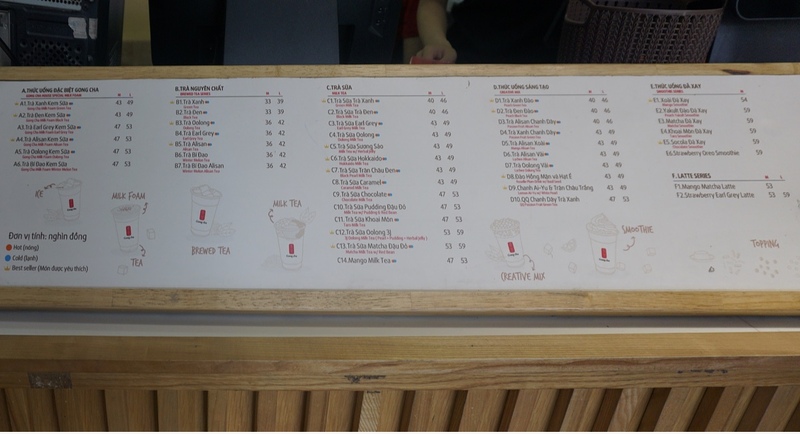 ベトナムに来てまでGong cha?という感じですが、日本にないメニューもありますし、値段は日本より、本場の台湾より安かったりします。