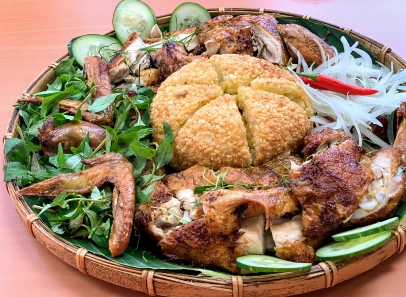 ※Gà nướng xôi chiênは南部の料理であり、焼き鳥と揚げたおこわと一緒に食べ方がある食べ物です。