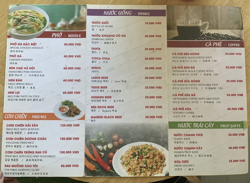 一番高いチャーハンとシーフードがついてくるもので120.000VND(約564円)