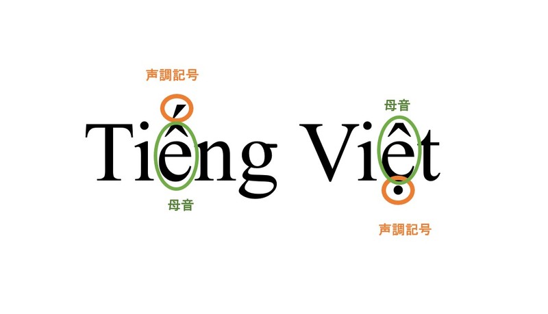 ベトナム語は12の「母音」、27の「子音」そして6つの「声調」、の3つで構成されています。