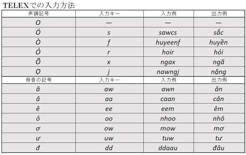 メジャーな「TELEX」での入力方法