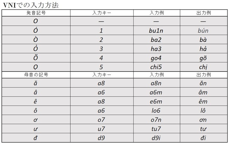 「VNI」での入力方法