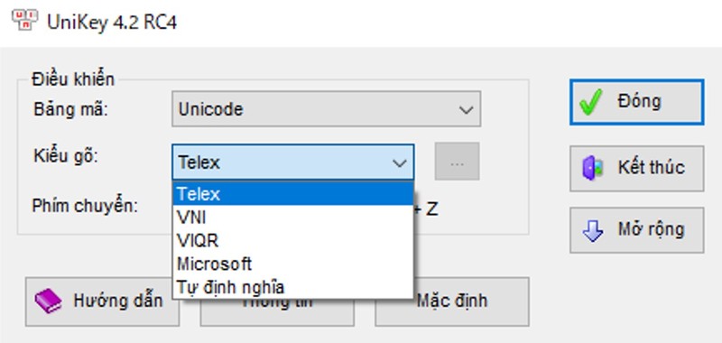 ※UniKeyではテレックス、VNI並びに他の入力方法もお選びいただけます。日本語や英語入力に変更する際は再度アプリに入り「Kết thúc(:Clause)」を選択してください。