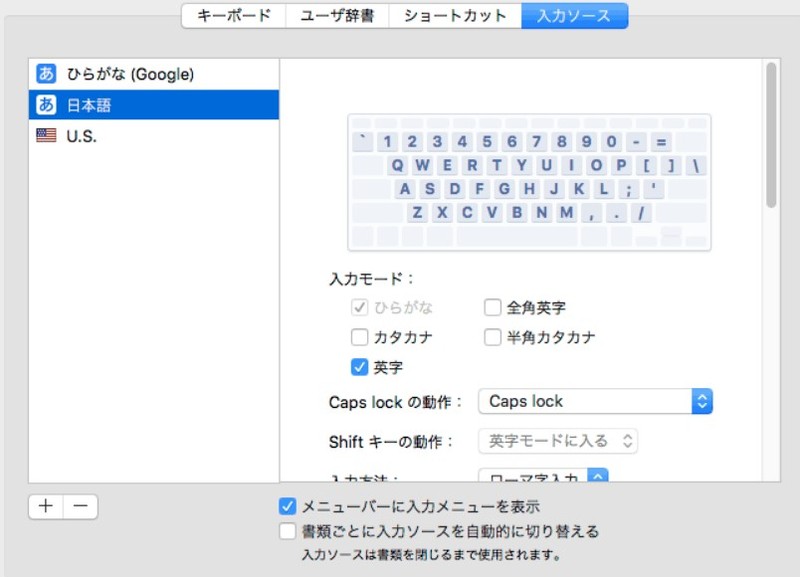 文字アイコン→環境設定を開く→入力ソース
