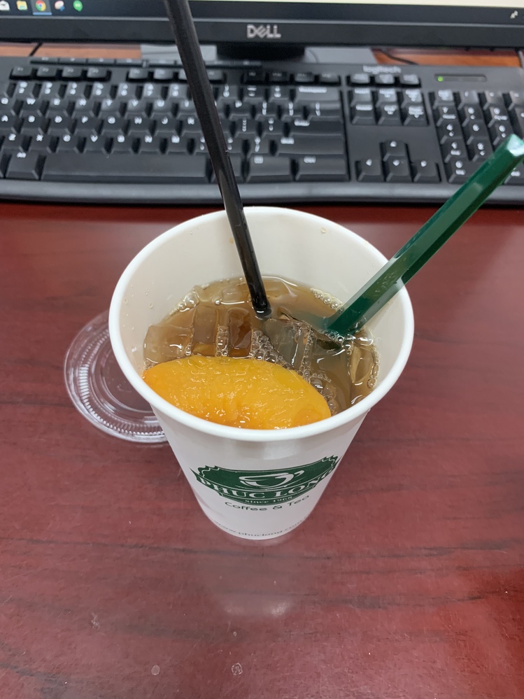 ぴーちに入っている桃は、缶詰のシロップ漬けの甘さがありますが、お茶の味もきちんとします。