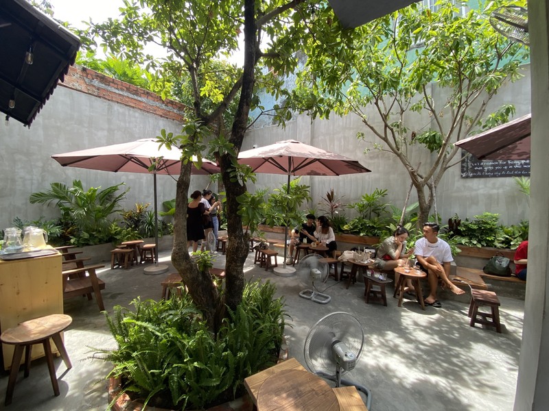 ベトナムではここ数年、このような自然(草木や趣ある素材)×無機質な感じが流行っており、まさにトレンドカフェの一つだと思います。