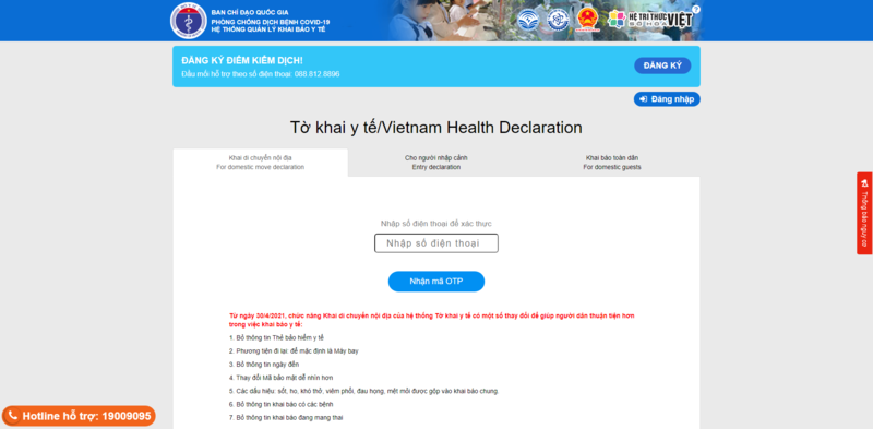 ベトナムでは国内移動の場合でも、医療申告ができるように2020年3月21日よりシステム化されています。