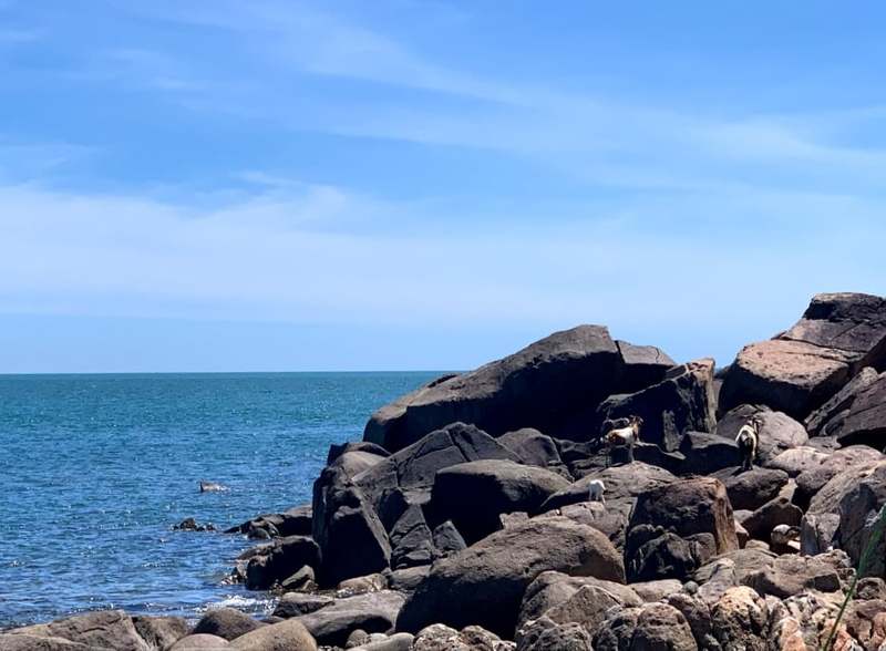 ビーチ横の木陰で休んでいると、遠くに見えたヤギの家族。