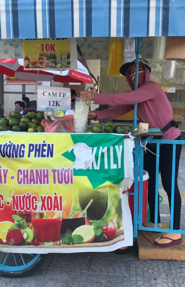 ダナン市内にはオレンジジュース販売を生業にしているおばちゃんが多くいます。