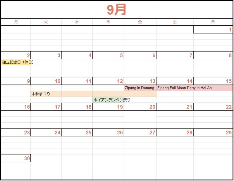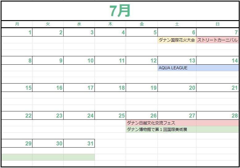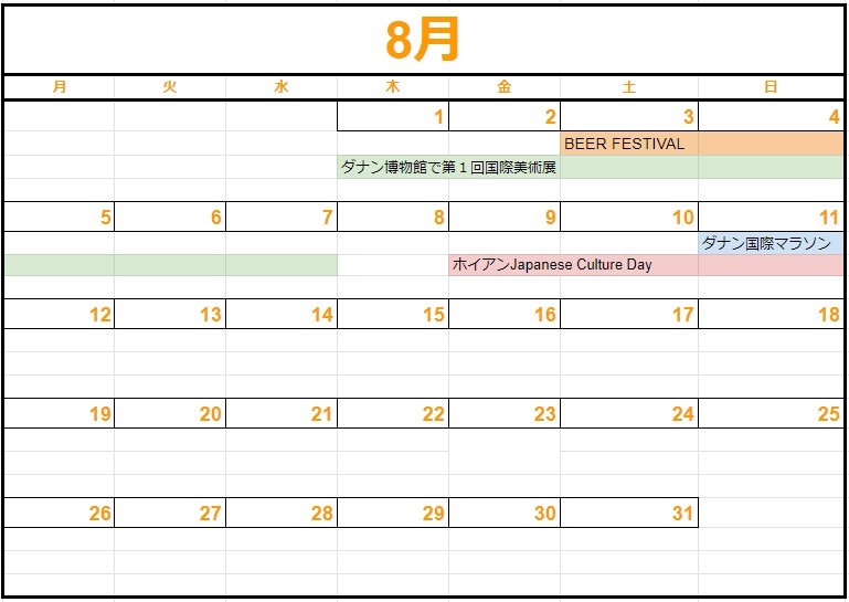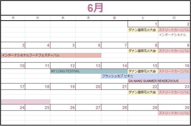 ダナンで行われる2019年のイベントスケジュールをまとめました。