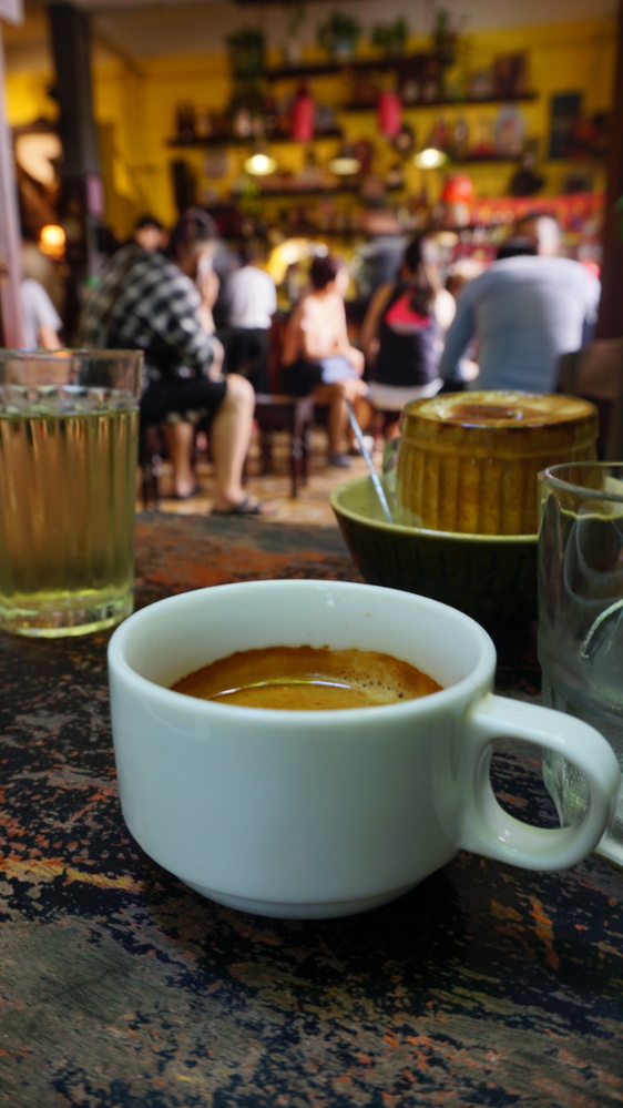 カフェスー(ベトナムコーヒー)はコンデンスミルクを入れその上からコーヒーを入れたものになります。今回はホットを頼みました。