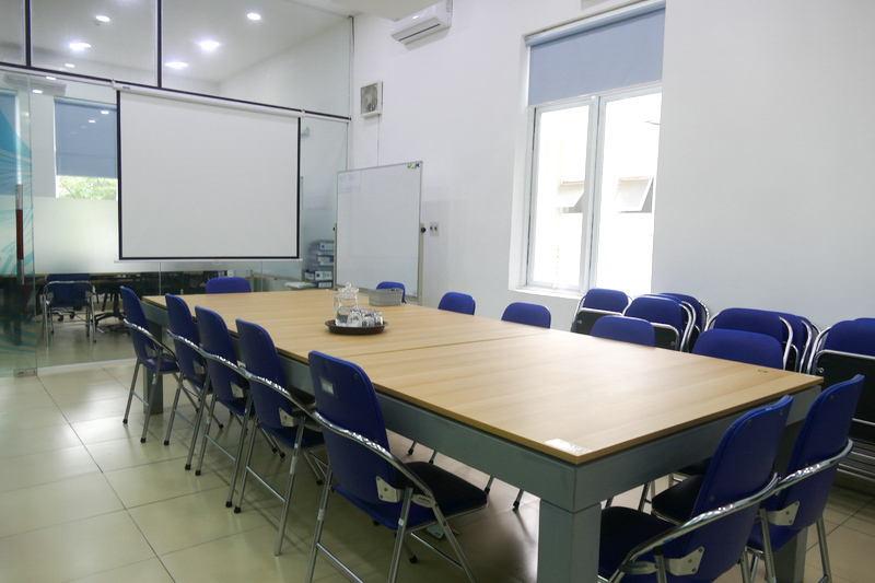 雰囲気は木材を使ったベトナムのクラッシックな雰囲気で、白い壁にガラス窓をたくさん使っているので明るくモダンな雰囲気が特徴的です。自由に使用できるホワイトボードや、ミーティングルーム、プリンターやプロジェクターもあります。