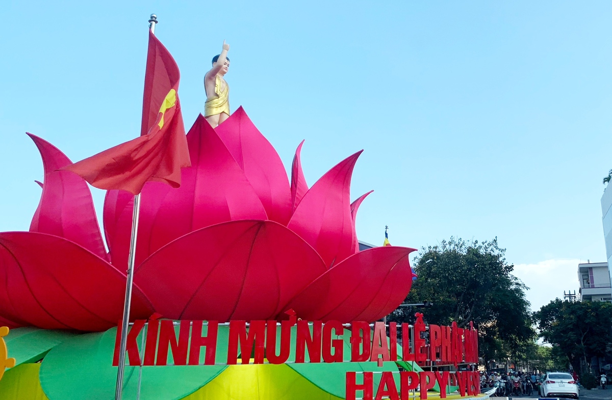 毎年、釈迦のシンボルである蓮の花をモチーフにしたモニュメントや電灯が町に設置され、仏教の旗とベトナム国旗が家の前に飾ったり、旗やお祝いの品を持って早朝に行進しセレモニーを執り行ったりする様子が見られます。