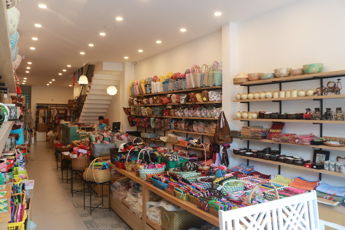 ダナン市内のお土産屋さんの中でもTOPクラスの品数数を誇り、バッグ、小物、アクセサリー、靴などの定番のお土産から、ちょっと変わったお土産品まで揃います。
