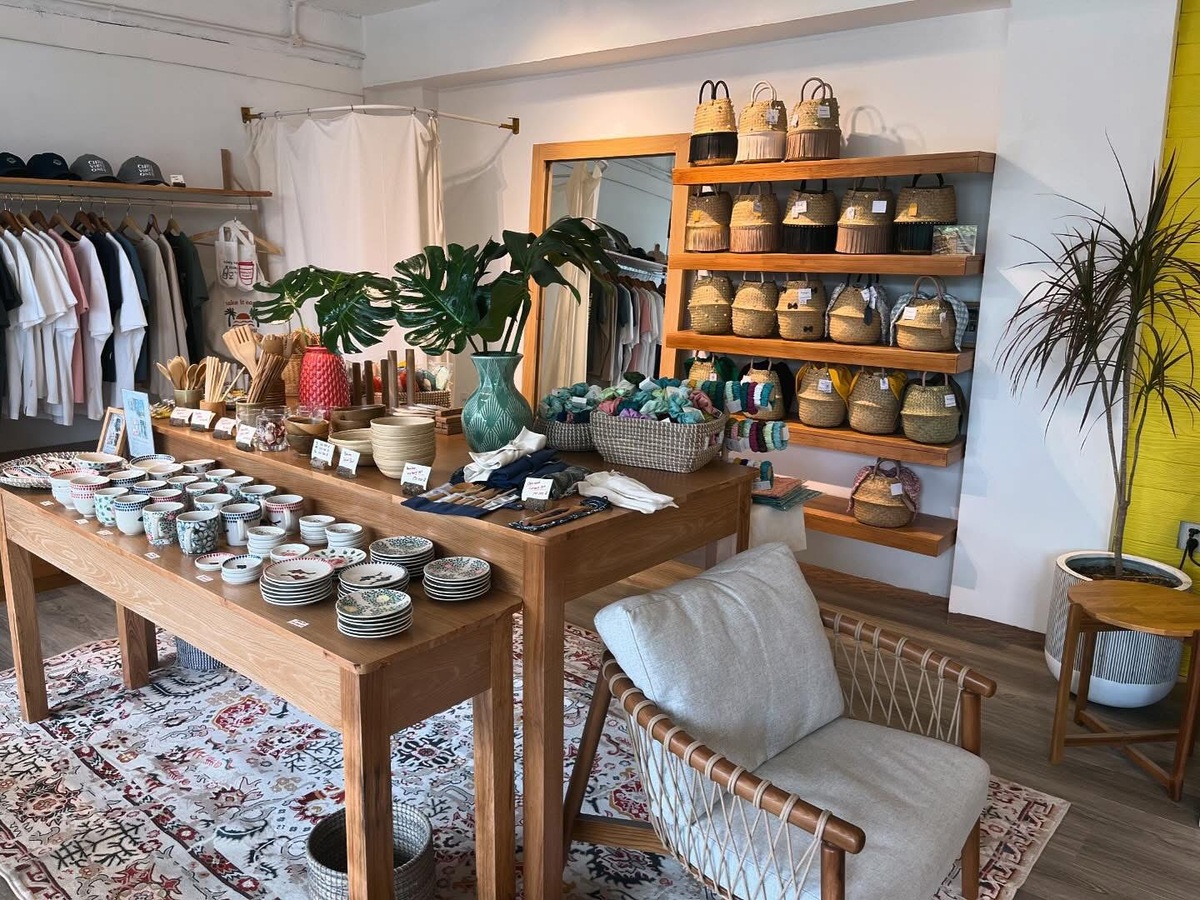 ホアリーから徒歩10秒ほどの場所にあり、お皿などの陶器をメインに、刺繍やバッグなどを販売しているお店です。