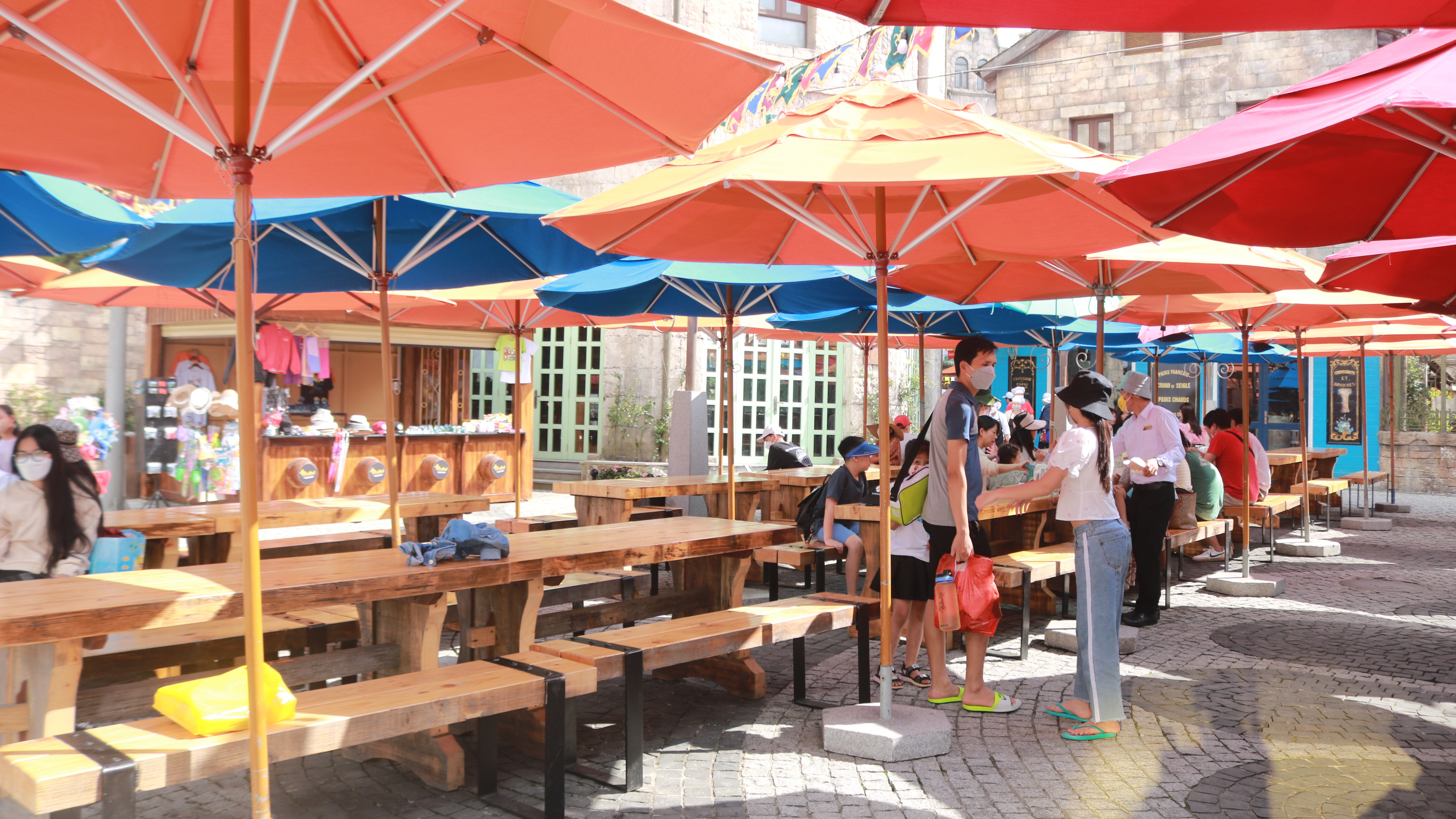 簡単ないくつかのアトラクション、ミニゲームセンター、蝋人形の館、ワインセラー、お寺、食事処やスタバなどのカフェまであります。意外にもフランス風の街並みも楽しめるかと思います。