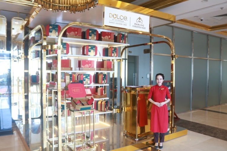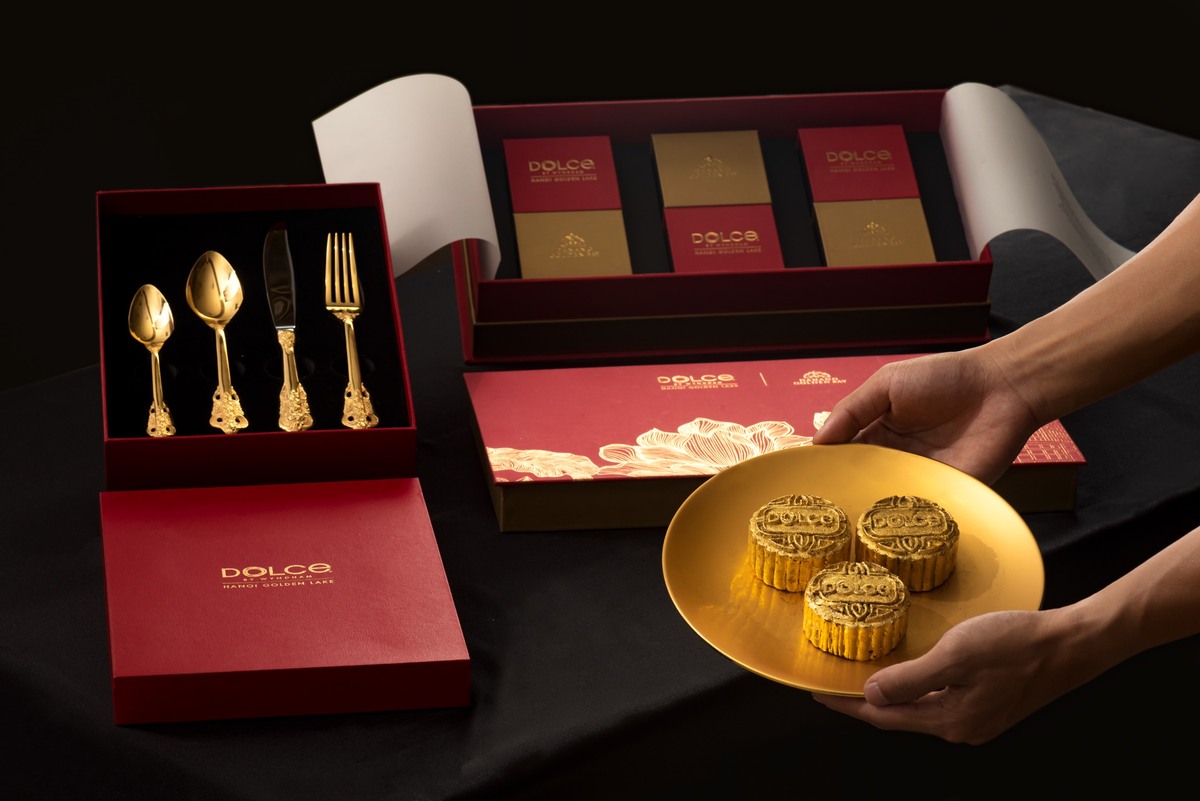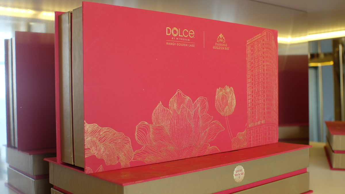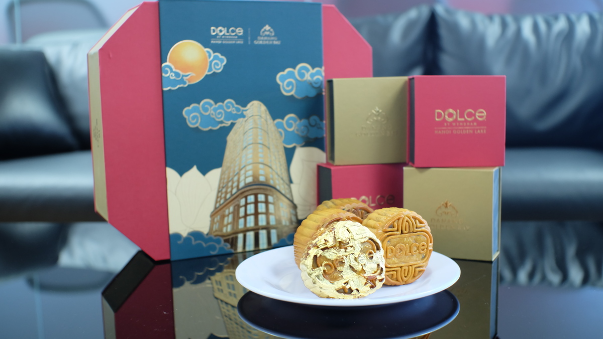 この美しい黄金月餅を含む月餅ボックスは、ハノイのDOLCE By Wyndham Hanoi Golden LakeとダナンのDanang Golden Bayにて9月10日までまで販売されます。