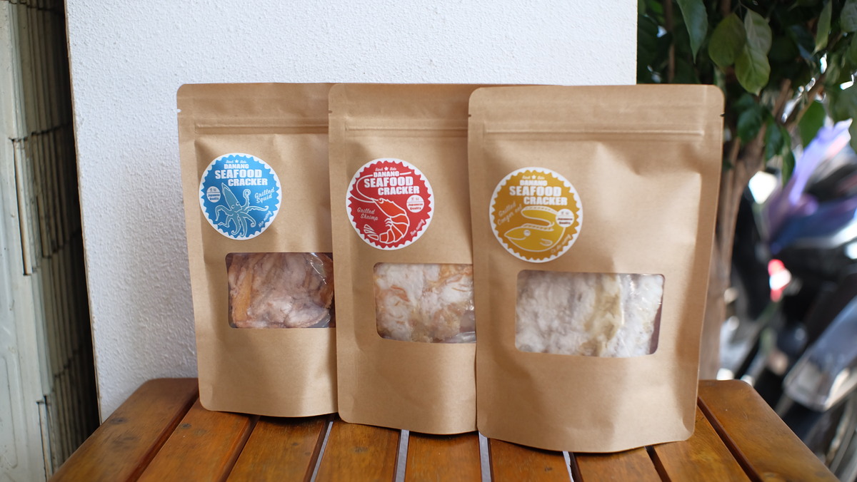 ダナン産のエビ・イカ・アナゴをプレスして作った素材の味が凝縮された海鮮せんべいは、おつまみにピッタリ!