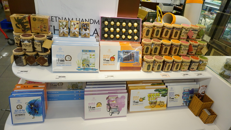商品のお値段は板チョコが30.000VND(150円)から粒チョコは一粒21.000VND(100円)、一番高いものは会社など大人数へのお土産にピッタリの16個箱入りチョコで276.000VND(1.300円)ほどです。