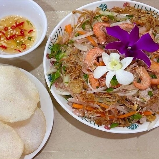エビ、イカ、野菜など様々な具材が入った炒め春雨「Mien xao hai san(ミエン サオ ハイサン)」。