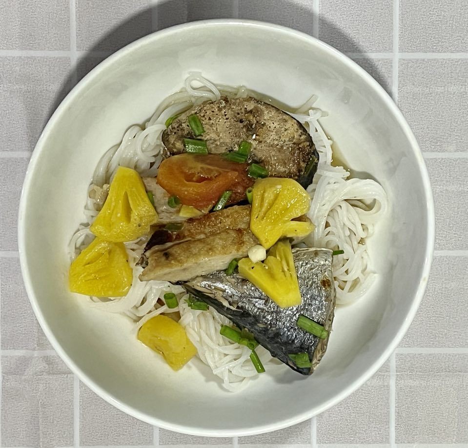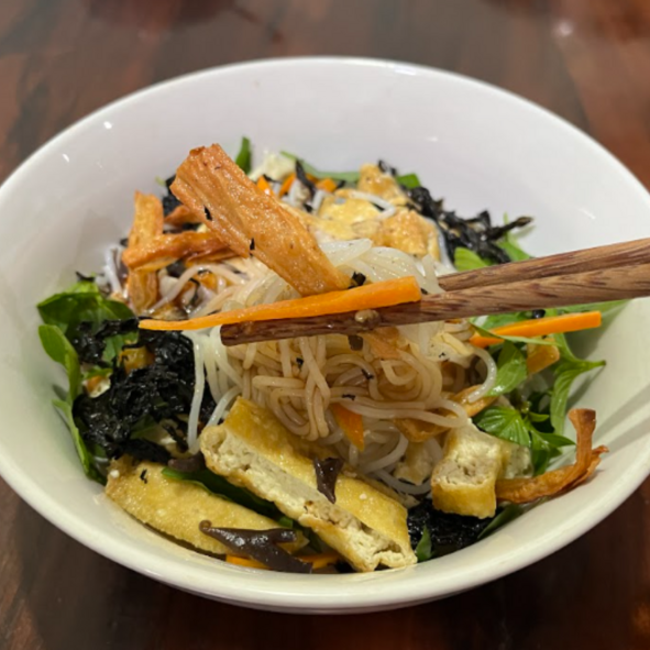 ベトナムの菜食の日に食べられることが多いベジタリアン家庭料理ブンチョン・チャイ(Bun tron chay)。