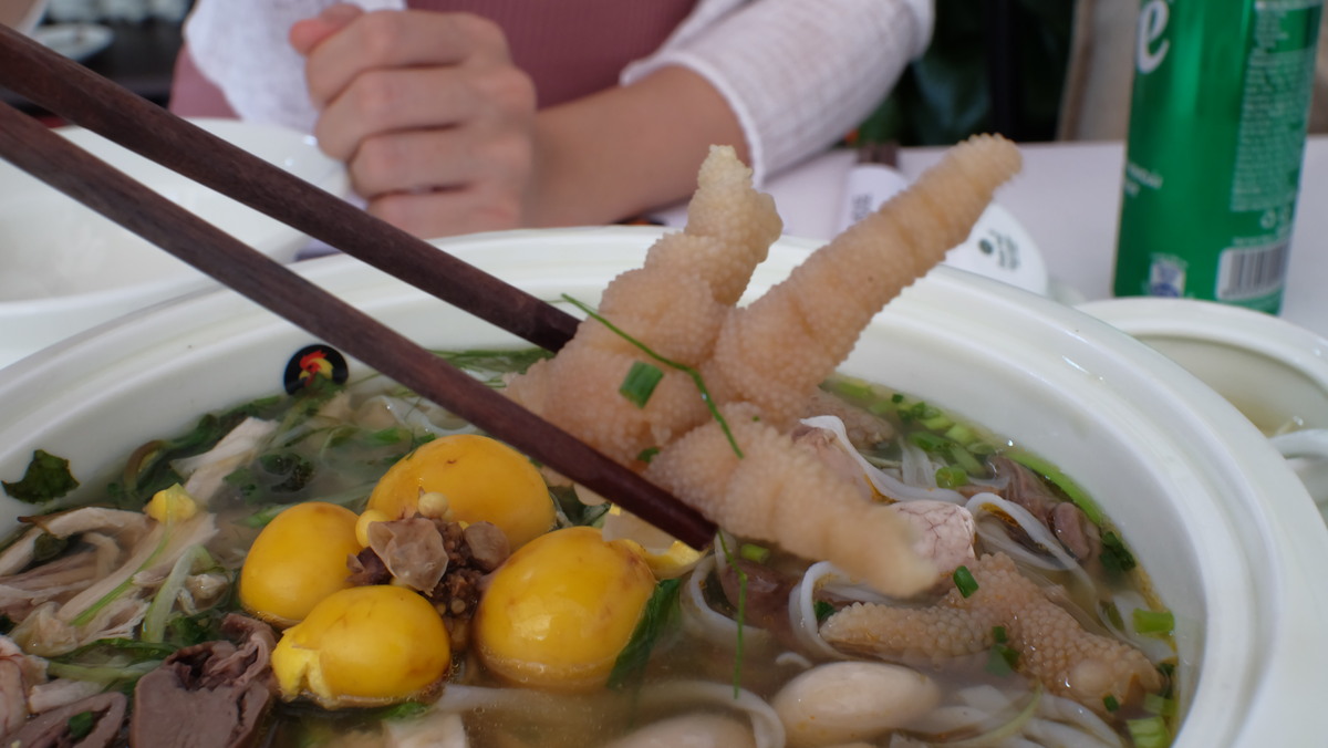 「Tô phở gà Đệ nhất Tràng An(:天下一品ののチャンアンチキンヌードルスープ)」にはベトナムの高級食材として知られるGà Đông Tảo(ドンタオ鶏)²を使用。