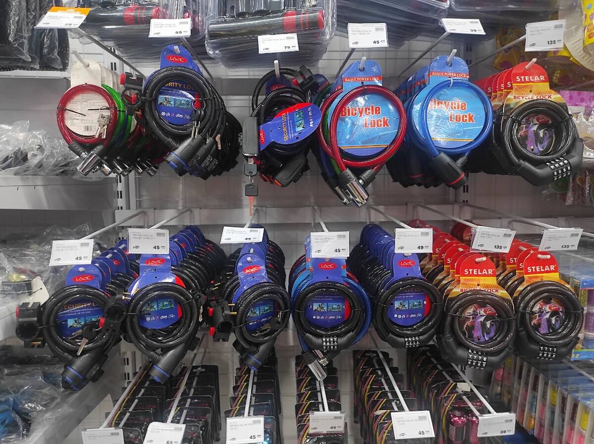 充電器、USBケーブル、ヘッドホン、イヤホン、ミニスピーカー、自転車等に使えるワイヤーロック、自転車用スマホホルダー、自転車用手袋など