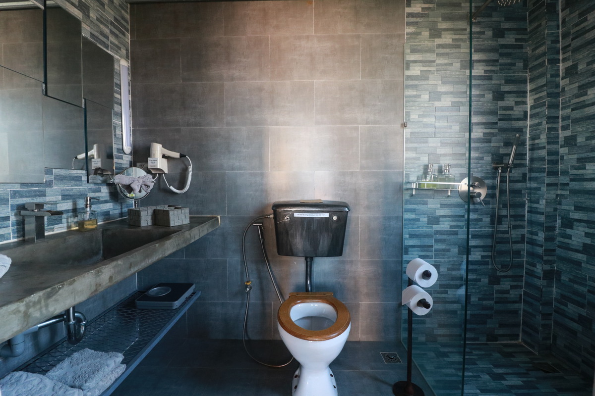 シャワールームとお手洗いにはきちんと扉が付いているので濡れる心配はありません。