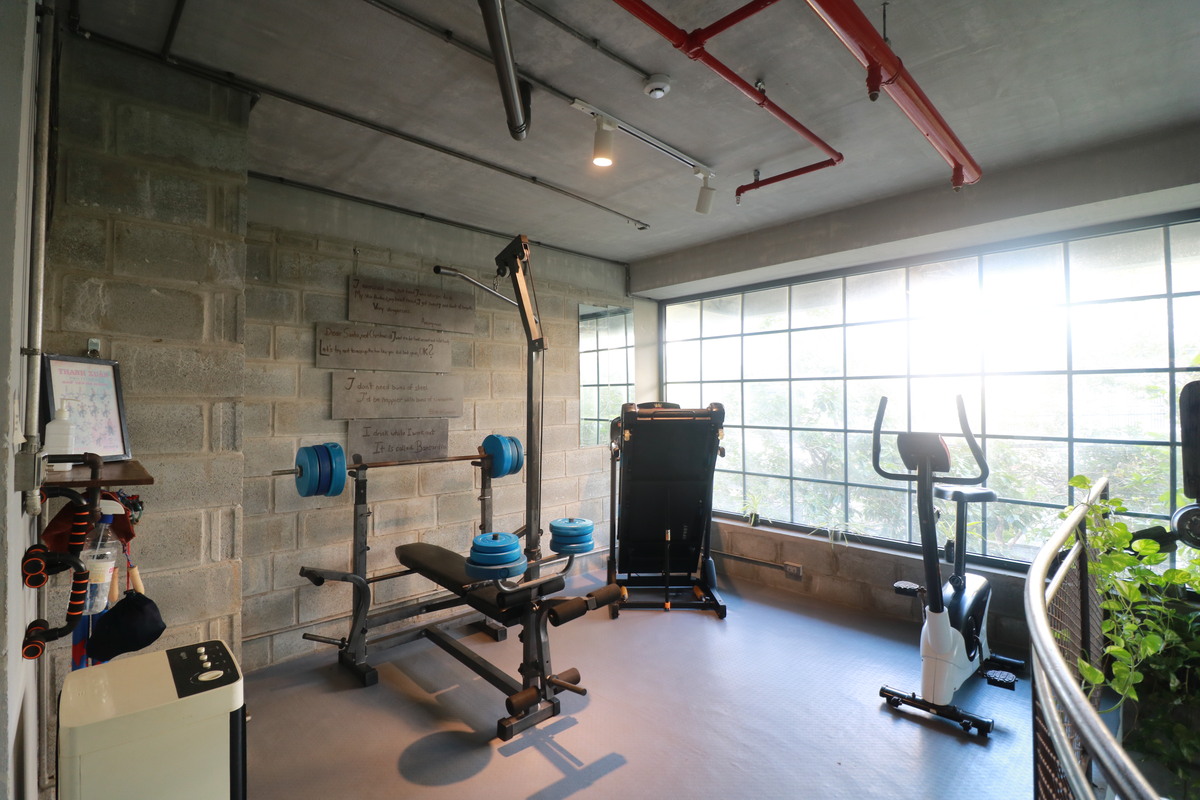 三階にはジムスペースもあるので、ちょっと身体を動かしたいというときにお使い頂けます。