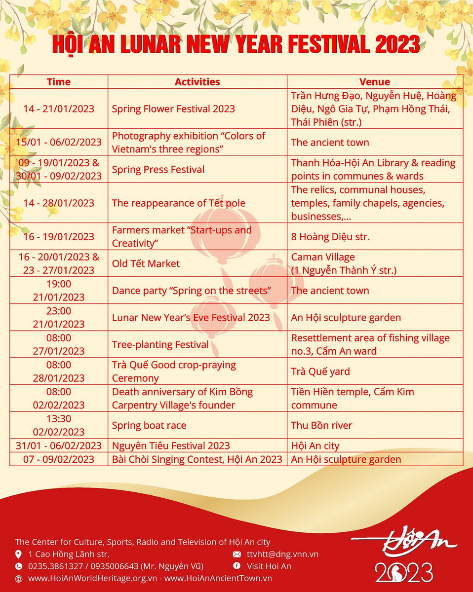参照:Bản quyền thuộc về Đài Truyền Thanh「Hội An tổ chức nhiều sự kiện, lễ hội chào năm mới 2023」/Báo Lao Động「Các chương trình chào đón năm mới 2023 tại Hội An」