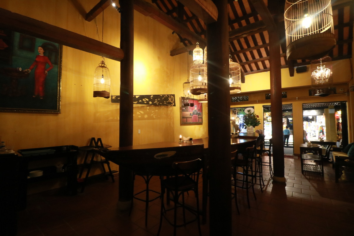 外観からは想像できないほど奥に奥にとスペースが広がる、ホイアンならではの伝統家屋の建築様式を持つ長屋の店舗には、2つの大きな部屋と中庭を完備。