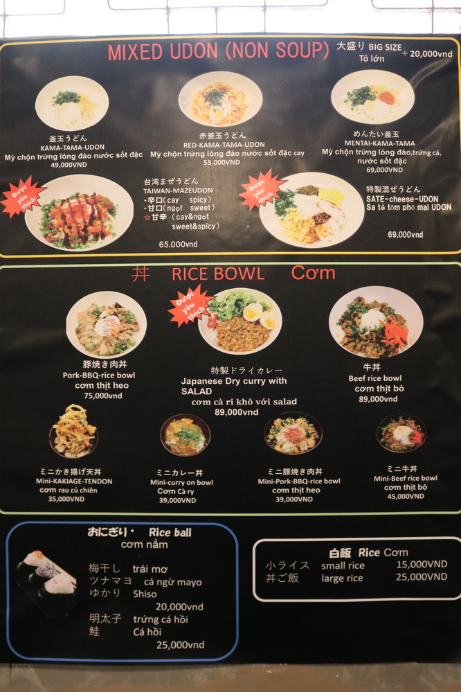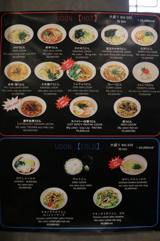 価格も40.000VND~とローカルの麺に合わせた金額設定にし、ベトナム人にも日本のうどんを食べてもらいたいというオーナーの熱い気持ちが伝わってきました。