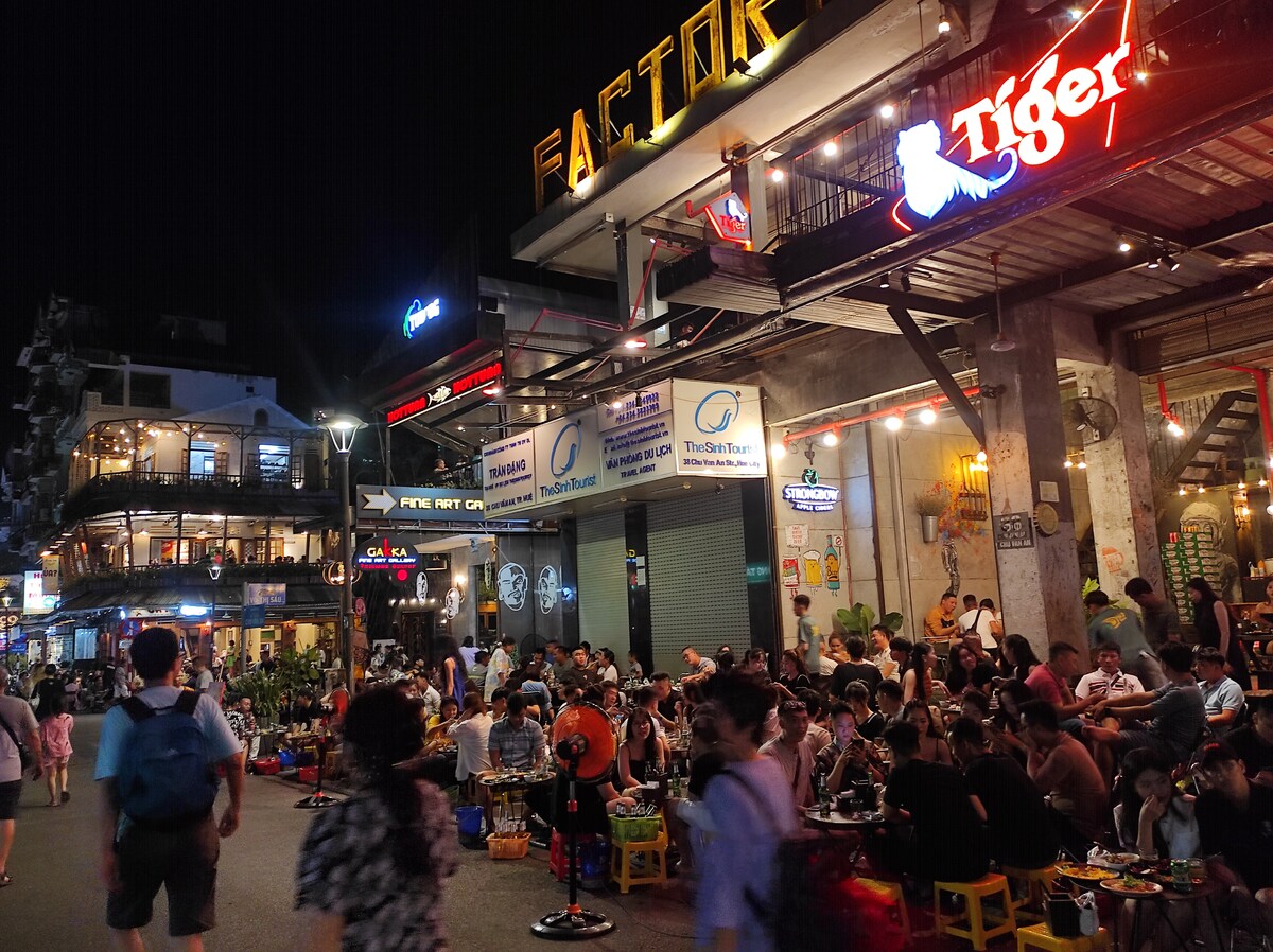 夜は歩行者天国になるエリアで、多くの飲食店やバー・クラブをメインとし雑貨店、洋服店が並びフエのナイトライフを楽しむには最適のスポットです。