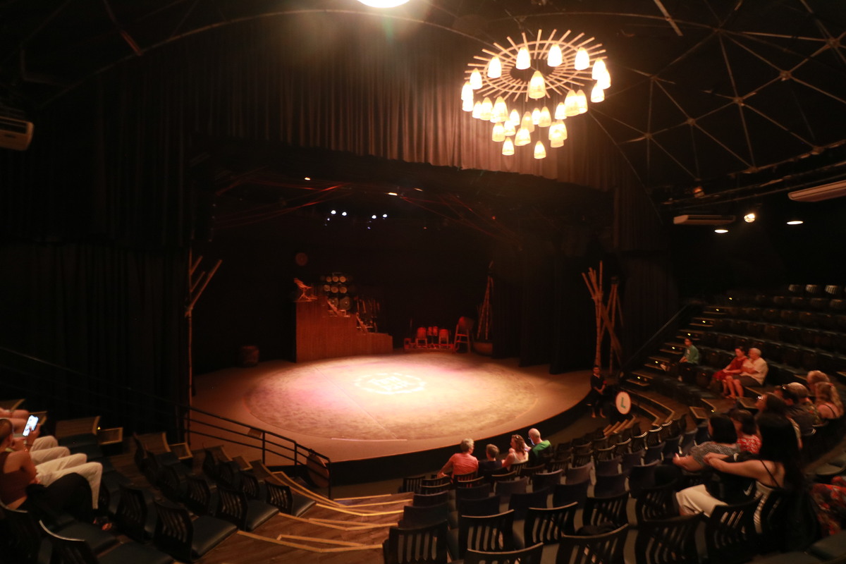 竹をふんだんに使用した満月をイメージしたドーム型の劇場は、パフォーマンスを見る前から気分を高めてくれる大切なショーの一部になっています。